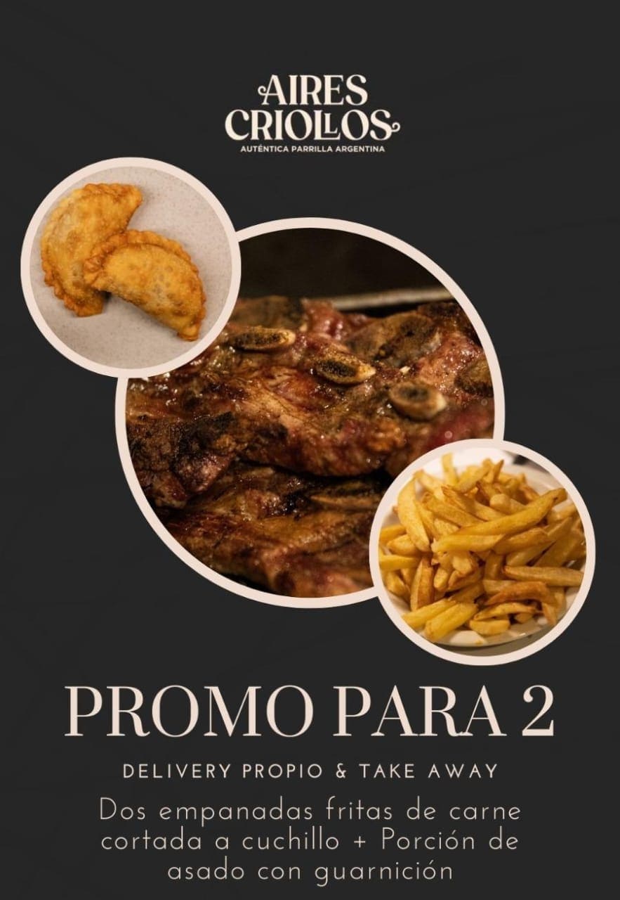 Promo para 2 persona 2 empanadas fritas de carne y una porción de asado con guarnición
